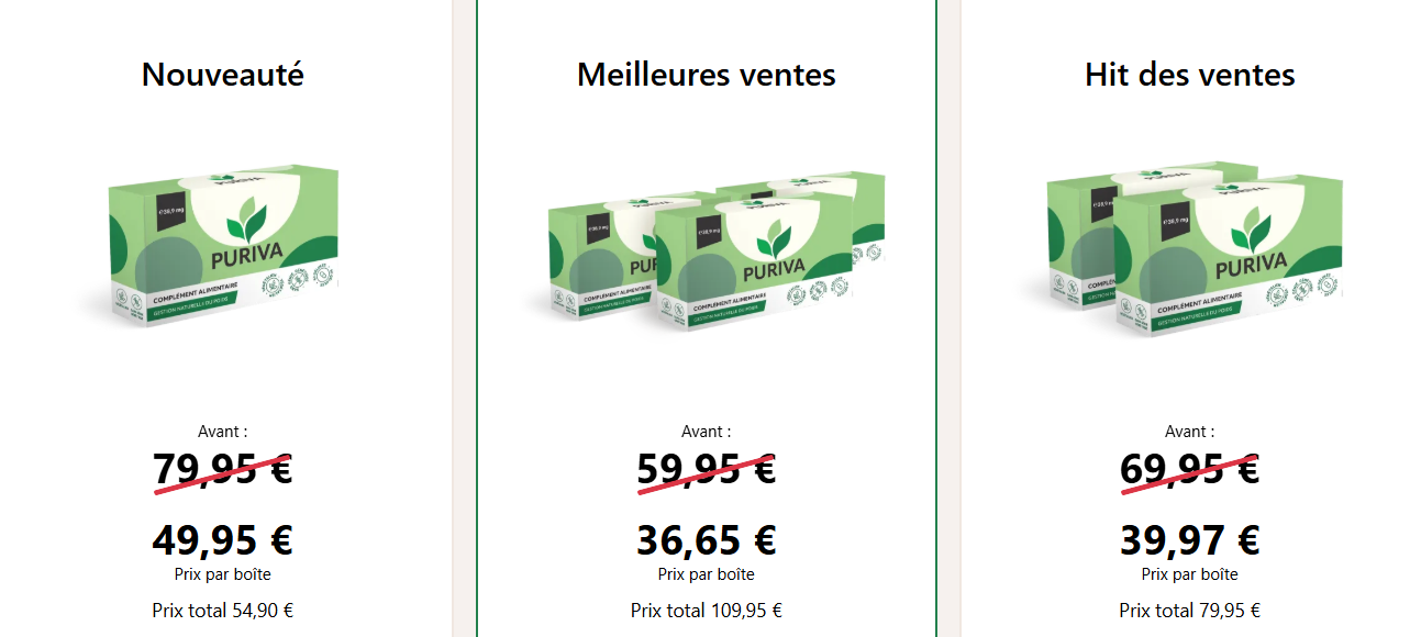 Puriva Capsules wordt verkocht via een officiële Nederlandse webshop, met kortingen tot wel 46 %.